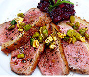 Pan Roasted Duck with Roasted Chestnut-Cranberry Stuffing