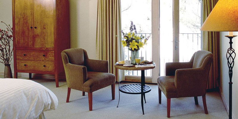 French doors in the second-floor guest rooms, where all our spacious guest rooms are located, welcome the beautiful Napa Valley climate indoors and reveal views from the balconies of the charming courtyard or to the beautiful rolling hills beyond. Rich ivory and sage fabrics decorate the rooms and suites and cherry wood finishes and white linens reflect the vibrant Napa Valley light. Other exquisite touches may include fireplaces, down comforters, vaulted ceilings.