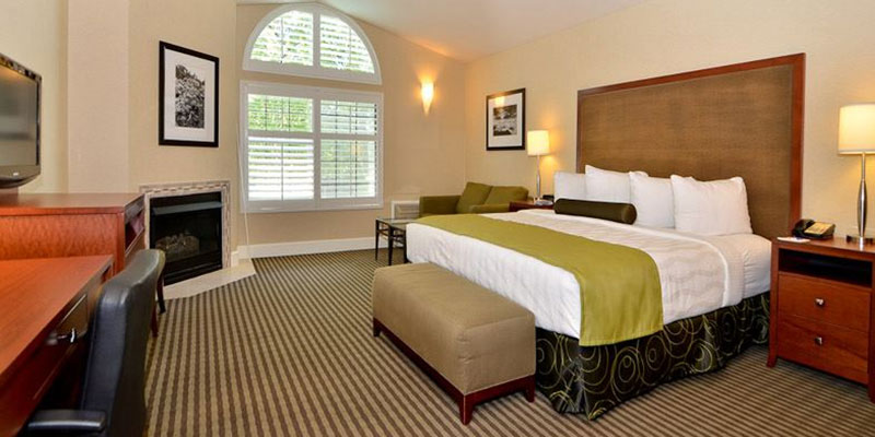 Rest and relax in Calistoga-style comfort in one of our 34 spacious and well-appointed non-smoking guest rooms featuring luxurious linens and bath amenities. Enjoy the convenience of a wet bar, microwave/refrigerator, high-speed Internet access, and a deluxe continental breakfast daily. Some rooms boast a balcony, fireplace or whirlpool jetted bathtub.