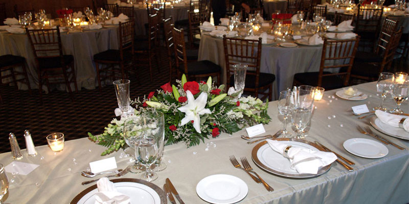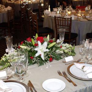 The vaulted ceilings and clean, simple lines in the adjoining Banquet Room can transform into your dream dining room configuration. The Oak Tree Ceremony & Clubhouse Reception package can accommodate up to 180 seated guests, and includes a white carpet aisle runner, standard color linens and linen napkins, tables, chiavari chairs, flatware, china, mirrored tile centerpieces and votive candles.