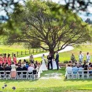 The Oak Tree Ceremony Site is located on the first tee of our Vineyards Course. Our 200+ year old Oak Tree evokes a sense of awe with its dramatic silhouette as the backdrop for your ceremony.