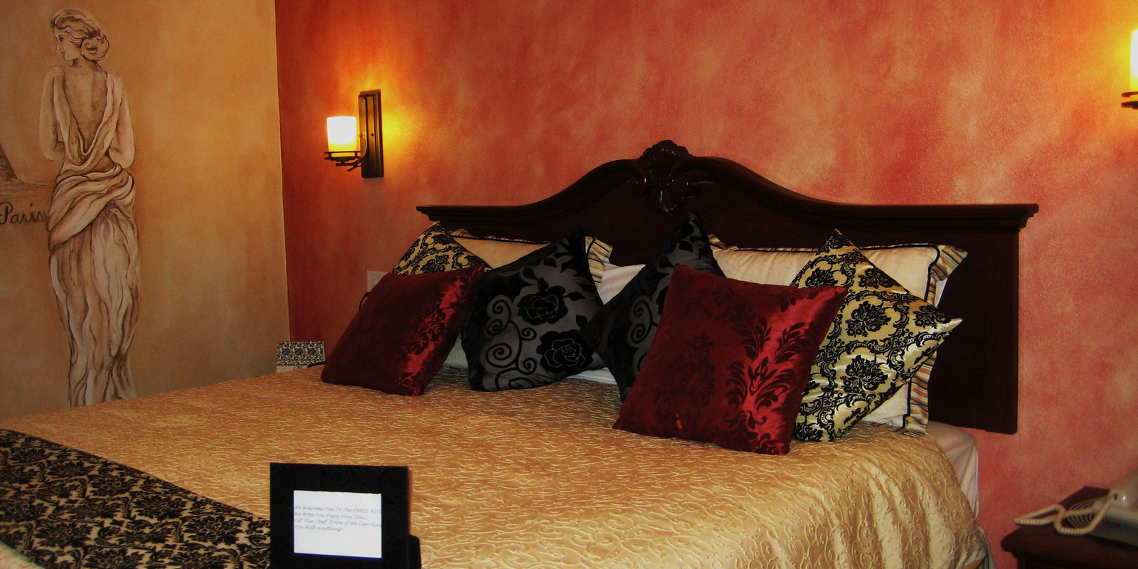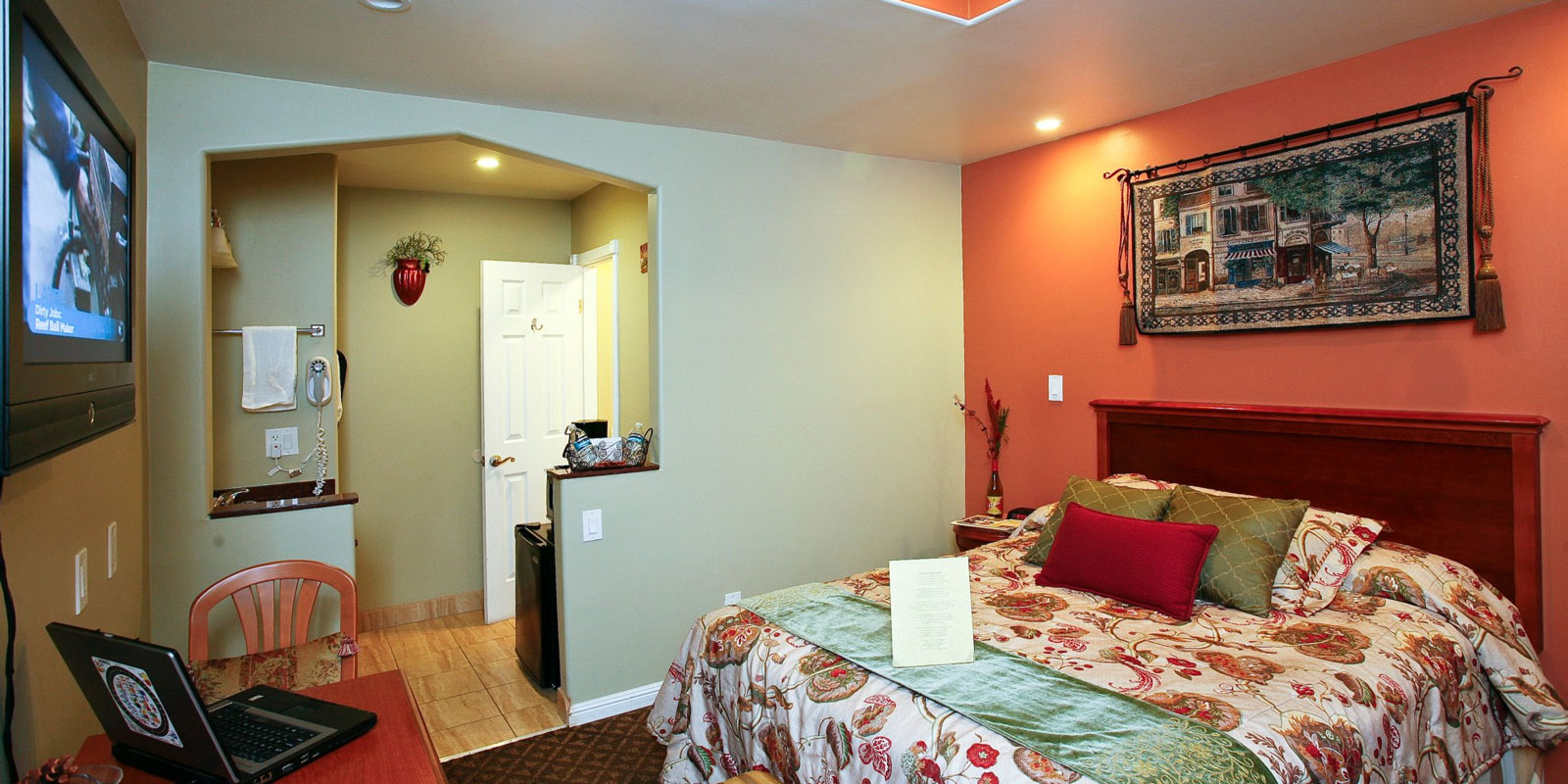 We offer the finest in relaxing, comfortable accommodations, all rooms come with wall mounted flat screen T.V.'s and hand written poems written from our personal designer according to each themed room. We are only minutes away from Downtown, the Napa Valley Wine Train, famous golf courses, hot air balloon rides, spas, restaurants and Napa Valley's famous wineries.