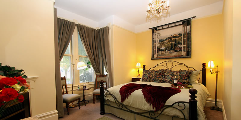Hennessey House is an elegant 10 room Victorian home located on 0.5 acre in historic downtown Napa. We are at the top of Main Street’s restaurant row, walking distance to top-notch downtown eateries , the Napa Valley Wine Train, Oxbow Market, Napa Riverfront, Uptown Theatre, Napa Opera House, and downtown wine tasting rooms.The Napa Valley vineyards and wineries are just minutes away by car.All six guestrooms in our Main House and all four Carriage House rooms are uniquely appointed with a period flair. All rooms have private bathrooms with marble floors. Several rooms have fireplaces, and all Carriage House rooms have two person whirlpools tubs with shower. Complimentary parking is available for all guests in our private off street parking lot.Free wifi is available throughout the property.